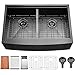 【T-304 Grade Stainless Steel Kitchen Sink, NANO Finish】: This 33 black farmhouse sink is constructed with dent-resistant T304 stainless steel in TRU16 real 16-gauge for superior strength and durability. Will never rust or stain , Easy to clean and long-lasting. And matte black farmhouse sink with Gunmetal Matte Black NANO brushed works like water on Lotus leaf - no water trace left .Very easy to clean,anti-freezing heat and non-seepage water ,1000℃ high temperature do not fade.