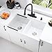 Perfect Design: Porcelain farmhouse kitchen sinkwith straight sidewalls creates plenty of workspace and accommodates large items like pots, pans, dishes, utensils.Optimized bottom slope keeps water from pooling and avoid clogging. Easy to clean, just washes clean with soapy water; food and liquid won't stain. Naturally sound-dampening fine fireclay eliminates noise and vibration when sink is in use. So quiet, no exterior soundproofing is needed.