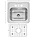 Measuring 13” by 13” by 5 1/4” deep, the sink is made of durable and reliable stainless steel. In the world of materials, stainless steel is perfect for a low-maintenance and attractive item. Rust-resistant and stain-resistant, stainless steel keeps your space looking nice with minimal effort.