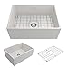 CLASSIC STYLING & TIMELESS DESIGN complement any style; DESIGNED TO FIT your unique space with fully glazed sides that allow for a variety of installation options: traditional apron-front with varied projection, full undermount, or slightly raised lip based on your countertop and cabinet needs. Gently rounded edges give softness to the face and a classically elegant finish. Safe for indoor or outdoor use. FREE ACCESSORIES include a custom-fit, engineered stainless steel sink grid and basket strainer; UPGRADE YOUR SINK with luxury drain covers and an expandable colander for EVEN MORE FUNCTIONALITY (sold separately).