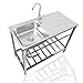 ※→ Utility Free-standing Commercial Sink: Made of high-quality 201 stainless steel, rust-resistant and corrosion-resistant, it can withstand high-capacity fast-paced commercial kitchen environments, the single-bowl freestanding outdoor sink with faucet is perfect for any dining setting. Paired with Washing Hand Basin, generous drain and storage racks, ensure the efficiency of the kitchen.