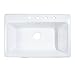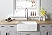 APRON FRONT DESIGN combines practical convenience with timeless style, for a sink with enduring beauty and performance – SPACIOUS SINGLE BOWL: Deep sink with tight-radius corners and offset drain creates an uninterrupted workspace for washing your largest cookware, like stock pots and baking sheets