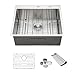 The stainless steel kitchen sink package comes with a 25 inch single bowl kitchen sink, drain assembly with lid cover, roll up rack for dishes drying, bottom rinse grid to prevent scratches, hardware and installation instruction.