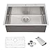 The 30 drop kitchen sink is constructed of SUS304 stainless steel TRU16 real 16 Gauge with superior strength and durability. The commercial grade T304 stainless steel with brushed finish ensures that it is highly resistant to scratch, and matches most kitchen appliances.