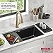 【Sound-proof Kitchen Sink】Sound-absorption undercoating and sound-dampening rubber pads made this quietest sink. Benefits: ① Minimizes water drumping sound and reduces vibration; ② Reduces condensation on the underside of sink, keeps cabinets dry and clean