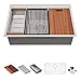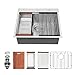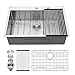 【What's in the box】30 inch undermount kitchen sink, drain assembly, bottom rinse grid, rollup rack, cutout template and installation instruction.