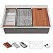 💦FREE PREMIUM parts : 30'' x 22" x 10’’ (minimum cabinet base size is 33 inch) | Package comes with a 30 inch drop in kitchen sink, stainless steel colander with redwood ends, sapele redwood cutting board, drain assembly with decorative caps, roll up rack, stainless steel bottom rinse grid, two faucet hole caps, installation hardware, template, instruction..