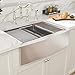 The 33 inch farmhouse sink has a flat bottom that slopes gently towards the center drain. This design ensures that dishes and wine cups stand securely without slipping, while also making it easier to wash items down the drain. The sink also features R20 rounded corners that make it easy to clean.