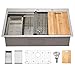 Double Ledge Workstation Sink: 33x22 drop in kitchen sink is designed with Double ledges provide two tracks as a workstation sink for saving space. The track for sliding the built-in accessories convert your sink to a workspace and provides us with more space to use. It is perfect for multi-tasking, cutting, drying, soaking and washing your largest pots and pans