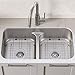 SPACIOUS DOUBLE BOWL with rear-set drains offers more usable workspace in the sink, easily accommodates stacks of dishes and large cookware – PERFECT DRAINAGE with rear-set drain opening and gently sloped sink bottom that helps prevent water from pooling – EASY TO CLEAN sweeping rounded corners reduce messy build-up over time