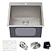 INCLUDES PROTECTIVE BOTTOM GRID: Stainless steel rinse grid prevents scratches and allows water to drain easily – PREMIUM DRAIN ASSEMBLY with removable strainer traps waste to keep the drainpipe clear – DECORATIVE DRAIN COVER conceals the drain opening to make this utility sink even more stylish