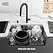 Included components: Oxford workstation includes 304-series stainless steel sink, black cutting board, black roll-up silicone drying rack, stainless steel strainer, and protective stainless steel bottom grid