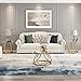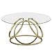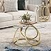 【Superior Quality Furniture】Crafted with tempered glass and gold finish metal frames guarantees this coffee table stability for daily use and offers a unique design. Round glass tabletop is easy to clean, and no worries about sharp corners.