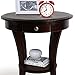 【Typical and Clever Design】: Our round end table is with curved wooden skirt and convertible tapered legs. It is crafted by experienced craftsmen of the design team. It is designed with lower storage and a small drawer, curved legs for stability, and a round table top with no angles. It has a delicate feel and is durable with a frosted surface.