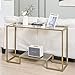 Narrow Table with Wide Application: The foyer table in narrow table can fit snugly in different places, such as the narrow corridor. Besides, featuring clear and glossy glass and gold finished frame, the 2-tier console table is a stylish & functional addition to the living room, hallway and entryway.