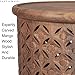 Versatile: A carved wooden drum side table can blend in with Traditional, Rustic, Mediterranean, Tuscan, Bohemian, Global, Colonial, Farmhouse, Lodge, and Coastal Decor styles. The compatibility of the table with a certain style will depend on design details, colors, finishes and other elements in the room.
