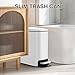 Soft Close Lid: The lid closes automatically after you step on it to open, but it is controlled and very quiet, no banging or loud noises. The slim trash can with lid has a unique, replaceable air damper means you can renew performance to like-new in no time. The trash bin with lid keeps waste neatly enclosed and helps prevent odors from escaping.