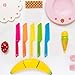 Enough quantity: package includes 10 pieces kids plastic safe knives; 5 Colors: blue, yellow, green, orange and rose red, 2 pieces for each color; The colorful kid's knives set can help you create delicious dishes