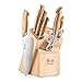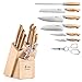 Includes 9" Slicing Knife, 8" Bread Knife, 8" Chef's Knife, 7" Santoku Knife, 5" Serrated Utility Knife, 3.5" Paring Knife, 2.75" Peeling Knife and Acacia Wood Block