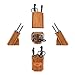Set Includes: 8” chef's knife, 8” carving knife, 8” bread knife, 5” serrated utility knife, 3.5” paring knife and a solid walnut wood block that houses each knife perfectly.