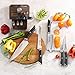 Hand crafted full tang knives forged from tight grained, X50CrMoV15 German Steel for incredible durability, stain resistance and exceptional edge retention. 2019 Houseware Design Award Winner. USPTO Patented Design.
