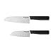 Product 1: CUTLERY ESSENTIALS: This KitchenAid 14-piece cutlery set include all the essential knives needed to perform everyday food prep tasks such as slicing, cutting, chopping, mincing, trimming, and more. Set includes: 8-inch chef knife, 7-inch santoku knife, 5.5-inch serrated utility knife, 3.5-inch serrated paring knife, 3.5-inch paring knife, six- 4.5-inch steak knives, herb shear, utility shear and storage block with built-in sharpener.