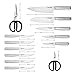 CUTLERY ESSENTIALS: This KitchenAid 14-piece cutlery set include all the essential knives needed to perform everyday food prep tasks such as slicing, cutting, chopping, mincing, trimming, and more. Set includes: 8-inch Chef Knife, 8 inch Bread Knife, 5-inch Santoku Knife, 4.5 inch Fine-Edge Utility Knife, Six 4.5 inch Steak Knives, 3.5 inch Serrated Parer, 3.5 inch Parer, Shears and Storage Knife Block with Built-In Sharpener.