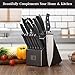 SLEEK DESIGN AND EASY STORAGE - A sleek, modern design fits in seamlessly among your other kitchen tools. The hardwood block with built-in knife sharpener reduces clutter from the counter and protects your knives for years to come.