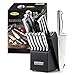 【EXCLUSIVE BUILT-IN SHARPENER】Stainless steel knife block set with built-in sharpener is a handy bonus. It saves you from having to honing blades on a sharpening steel.