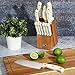 WHAT'S IN THE BOX: One 8-inch chef knife, one 8-inch bread knife, one 7-inch santoku knife, one 5-inch utility knife, one 3.5-inch paring knife, six 4.5-inch steak knives, one pair of kitchen shears, one sharpening steel, and one rubber wood storage block