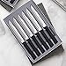 DISHWASHER SAFE HANDLES - The handles on the knives in this knife set are comprised of a black stainless steel resin that can be washed in the dishwasher. Hand washing fine cutlery is recommended but these handles are dishwasher tolerant.