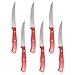 ALL-IN-ONE COMPLETE SET – Professional red knife set includes 8”Chef Knife, 8”Slicing Knife, 8”Santoku Knife, 8”Bread Knife, 5”Utility Knife, 3.5”Paring Knife, Kitchen Scissors, Knife Sharpener to stay sharp and 6 pieces of 4.5”Steak Knives.