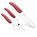 3-PIECE ESSENTIAL CERAMIC KITCHEN KNIFE SET: includes a 6” chef’s knife, a micro-serrated 5” tomato knife, and a smaller 3” paring knife for all types of meal preparation—a great starter set for the first time cook.