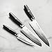 Set includes 4.75" petty/utility knife, 6.5" santoku knife and an 8" gyuto/chef's knife. Also includes magnetic wooden saya blade covers and the katana-style wooden knife stand to display these masterpieces in cutlery