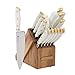 15 PIECE SET INCLUDES: 8-inch chef knife, 6-inch slicer knife, 5 -Inch serrated Utility knife, 5-inch santoku knife, 4. 5-Inch fine edge utility, 3.5-Inch Paring knife, 3-inch Birds beak knife, 6 4.5 inch steak knives, a pair of all-purpose shears and a modern, stylish Acacia Edgekeeper block.