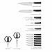 SET INCLUDES: 8-inch Chef Knife, 8-inch Slicing Knife, 7-inch Santoku Knife, 5.5-inch Utility Knife, 3.5-inch Paring Knife, 2.75-inch Bird's Beak Paring Knife, 4.5-inch Steak Knives (6), 8-inch Sharpening Steel, All-Purpose Household Shears and Wooden Block