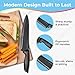 EXCLUSIVE DESIGN - The handles of this kitchen knife set are designed by the most professional designers with ergonomic handles that fit perfectly in any hand size, providing you with the most comfortable grip for long time use. Equipped with a built-in sharpener, you can sharpen your knives directly yourself without the need for a sharpening stone.