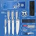 ▶【One Set For All Task】 XYJ cutlery set includes: 1 x 3.5 inch paring knife, 1 x 5 inch utility knife, 1 x 7 inch santoku knife, 1 x 8 inch slicing knife, 1 x 8 inch bread knife, 1 x 8 inch chef knife, 1 x 12 pockets roll bag, 1 x knife sharpening rod, 1 x kitchen scissors, 1 x vegetable slicer, 1 x peeler, 3 x cut resistant finger gloves.