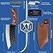 🔪【Full tang wooden handle】The full tang pakka wood handle is firmly bolstered with 3 rivets, allowing you to use for years to come. Ergonomic design provides a comfortable grip and agile control. There is a hanging hole at the end of the handle for easy hanging on the shelf