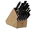 Includes: vegetable knife, paring knife, utility knife, chef's knife, carving knife, bread knife, santoku, sharpening steel, 6-steak knives, kitchen shears, and storage block