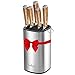 RUBBER FRICTION TABS: Designed with the consumer’s safety in mind, these crocks have been outfitted with special rubber friction tabs to prevent skidding and potential tipping of the knives and utensils over to edge of the counter. As well, this will prevent the base from scratching the counter.