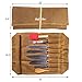 There are 2 classy vintage buckles that form a tight roll, with stretchable knife pockets and 1 durable zipper pouch to keep the knives secure while you are on the go.