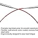 ChiaoGoo Red Lace circulars are made of high grade stainless steel and come with a bright red, highly flexible,Êmulti-strand, nylon-coated, steel cable allowing your yarn to easily slide end-to-end