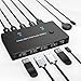 【KVM Switch Dual Monitor Ultra HD 4K @ 60 Hz】USB 3.0 Dual Monitor KVM switch HDMI support resolution 4K@60Hz, 2K@120Hz, 2K@144Hz. KVM switch 2 monitors 2 computers also support input terminal to connect 2 computers with different resolutions. Note: if you need a 4K resolution , please use HDMI 2.0 cable and make sure your computers and monitors support 4K.