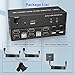 【DisplayPort KVM switch 4 computers 2 monitors】4 IN 2 OUT DisplayPort KVM switch Perfects for hooking up to 4 desktops or laptops to share 1 set of wired or wireless keyboard, mouse and 2 monitors for extended or mirrored screens. Note: This dual monitor KVM support DisplayPort dual-screen display (this function is only available on computers that support dual-screen display).