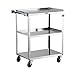 【3-tier Stainless Steel Cart】Heavy duty stainless steel utility cart with 4 mute wheels,0.8MM thickness,overall size is 95 x 50 x 95CM/37.4 x 19.68 x37.4''.The stainless steel cart is easy to clean and won't rust.