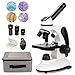 🎄🎄🎄【Dual Illumination System】Compound microscope.Microscope has incident and transmitted LED with adjustable light source brightness by turning the knob,which can see both opaque objects illuminated from above(as hair, fabric or some leaves, flowers, etc.) and translucent specimens illuminated from below,it’s easy to use.It comes with experimental tools,you can make your own biological samples,which is very interesting.Microscope for kids.