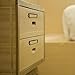 Antique Label Holder: Identify the contents of the drawers or file cabinet.