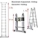 Capacity : The maximum load is 330 lbs (150 Kg),the telescopic ladder can extend to 6.2t when in A-frame ladder and up to 12.5 ft (3.8m)when in straight ladder , completely folded to 86cm for storage.