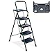 【3-Step Ladder with Tool Tray】:The large-size tool platform can accommodate tools and reduce the number of climbing ladders.Tool tray requires simple installation and No additional tools required, Only 1.6"" after folding ladder for easy storage and transportation. It's suitable for both indoor and outdoor.